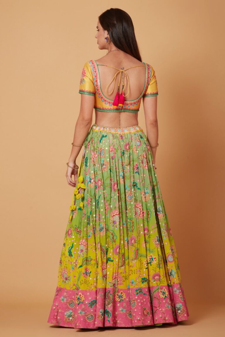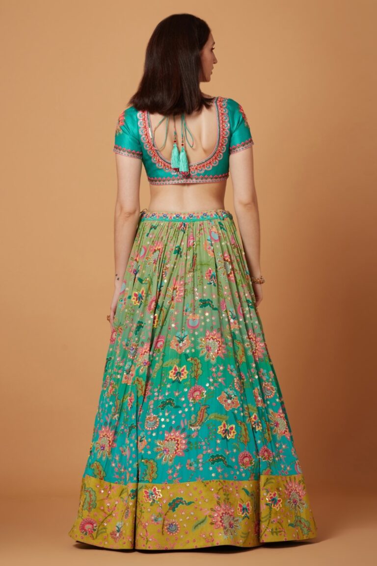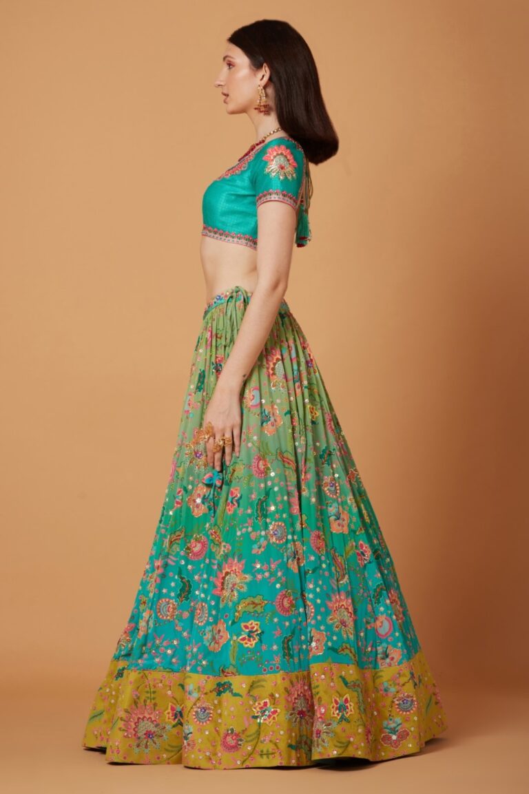 Yellow Blue floral lehenga