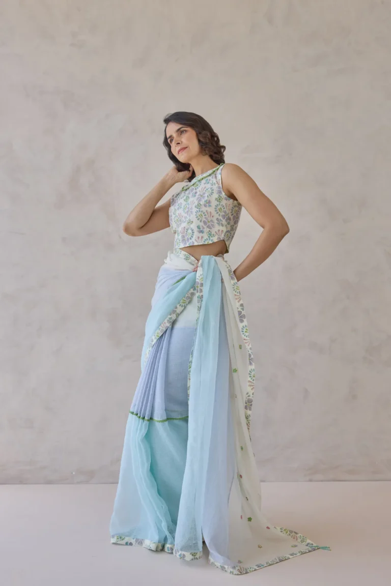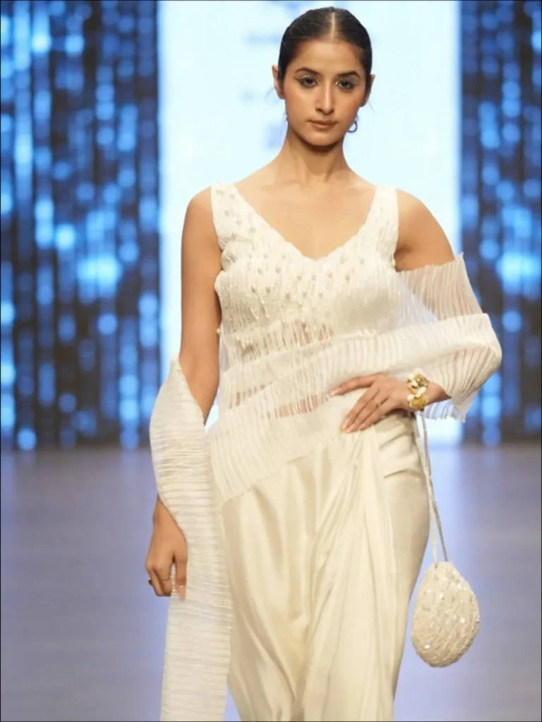 Champagne Luxe Embellished Drape Saree Set