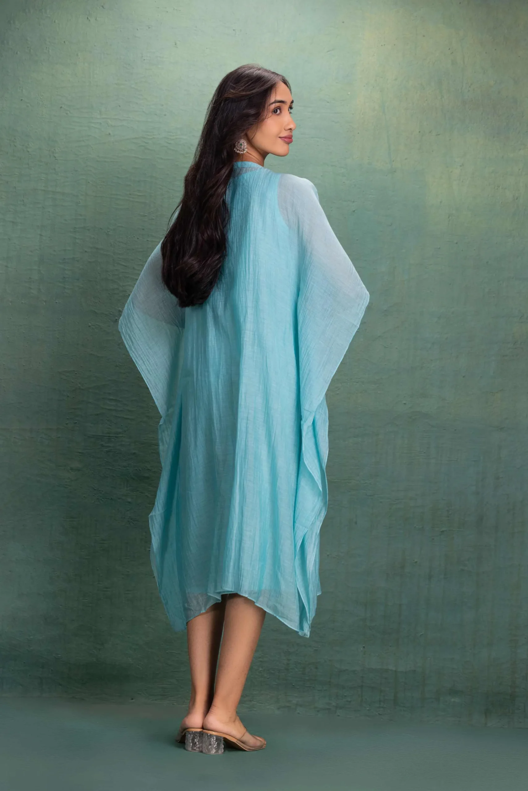 Crafted from lightweight, breathable fabric, this kaftan drapes beautifully, making it perfect for warm days, casual outings, or relaxed festive moments. The relaxed fit and airy sleeves ensure all-day comfort while keeping your look refined and graceful.