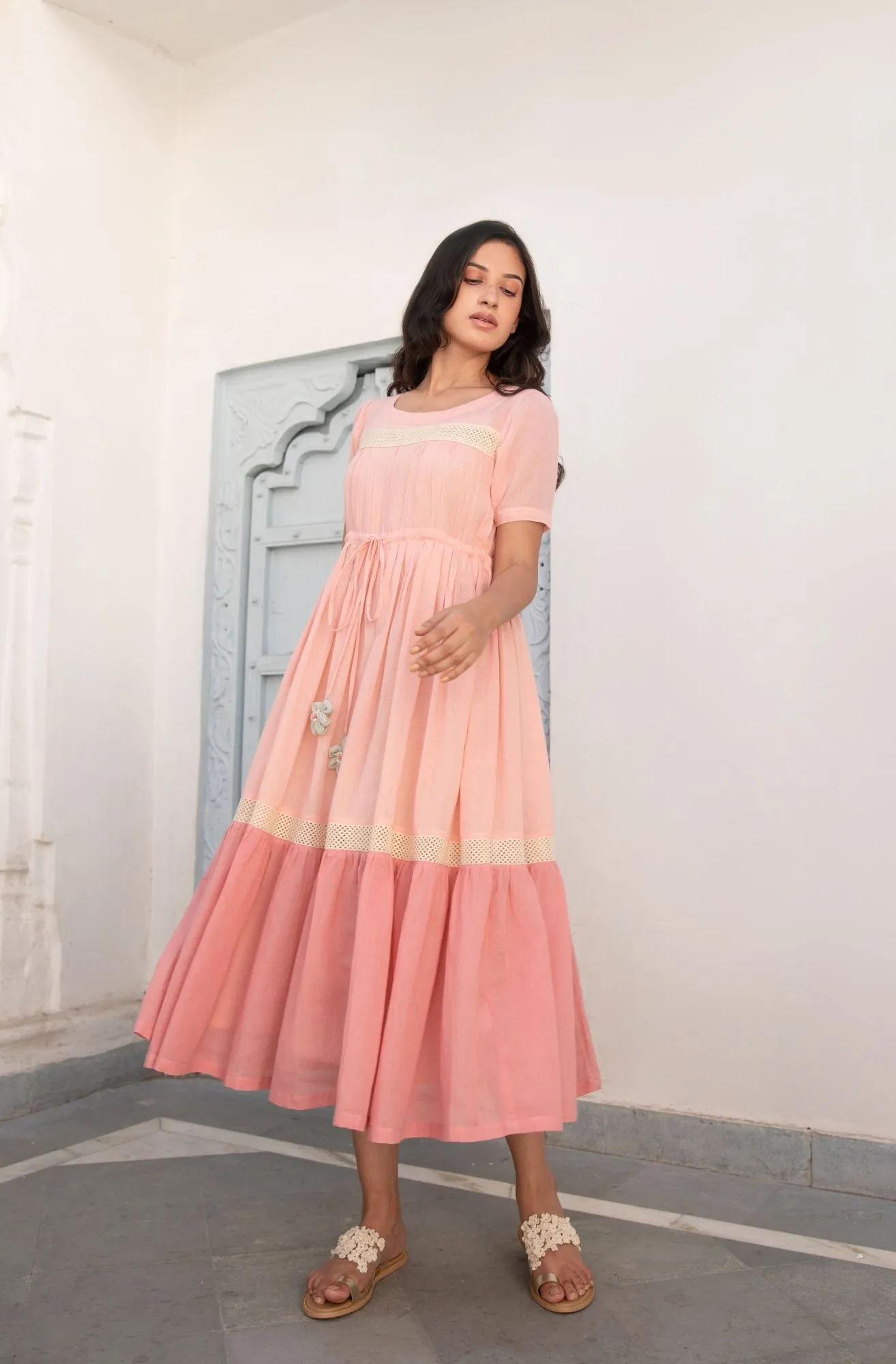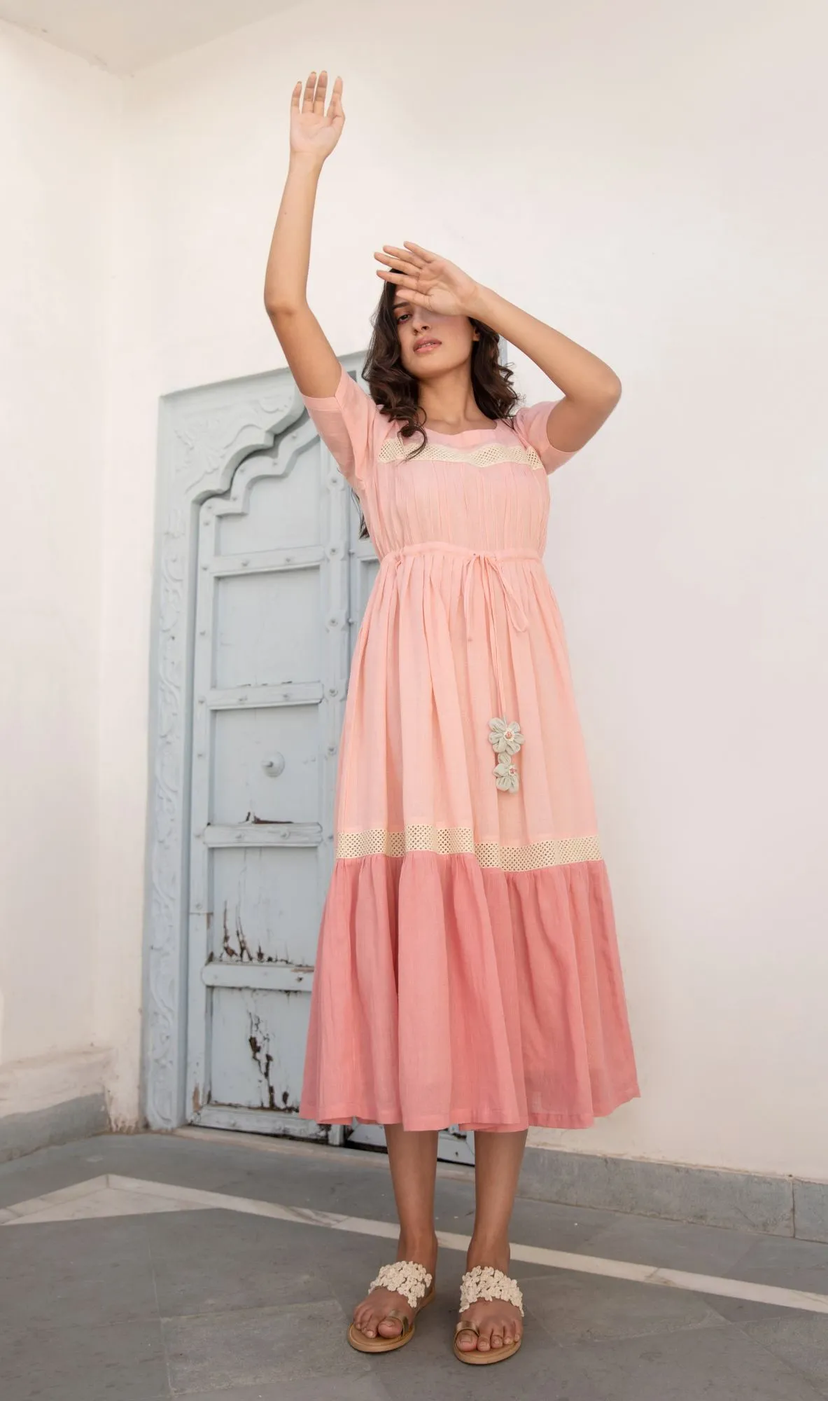 Soft, feminine, and effortlessly graceful — the Blush Charm Tiered Midi Dress is designed for everyday elegance. Crafted in a delicate blush pink hue, this dress features a beautifully gathered silhouette with subtle lace detailing that adds a touch of understated sophistication.