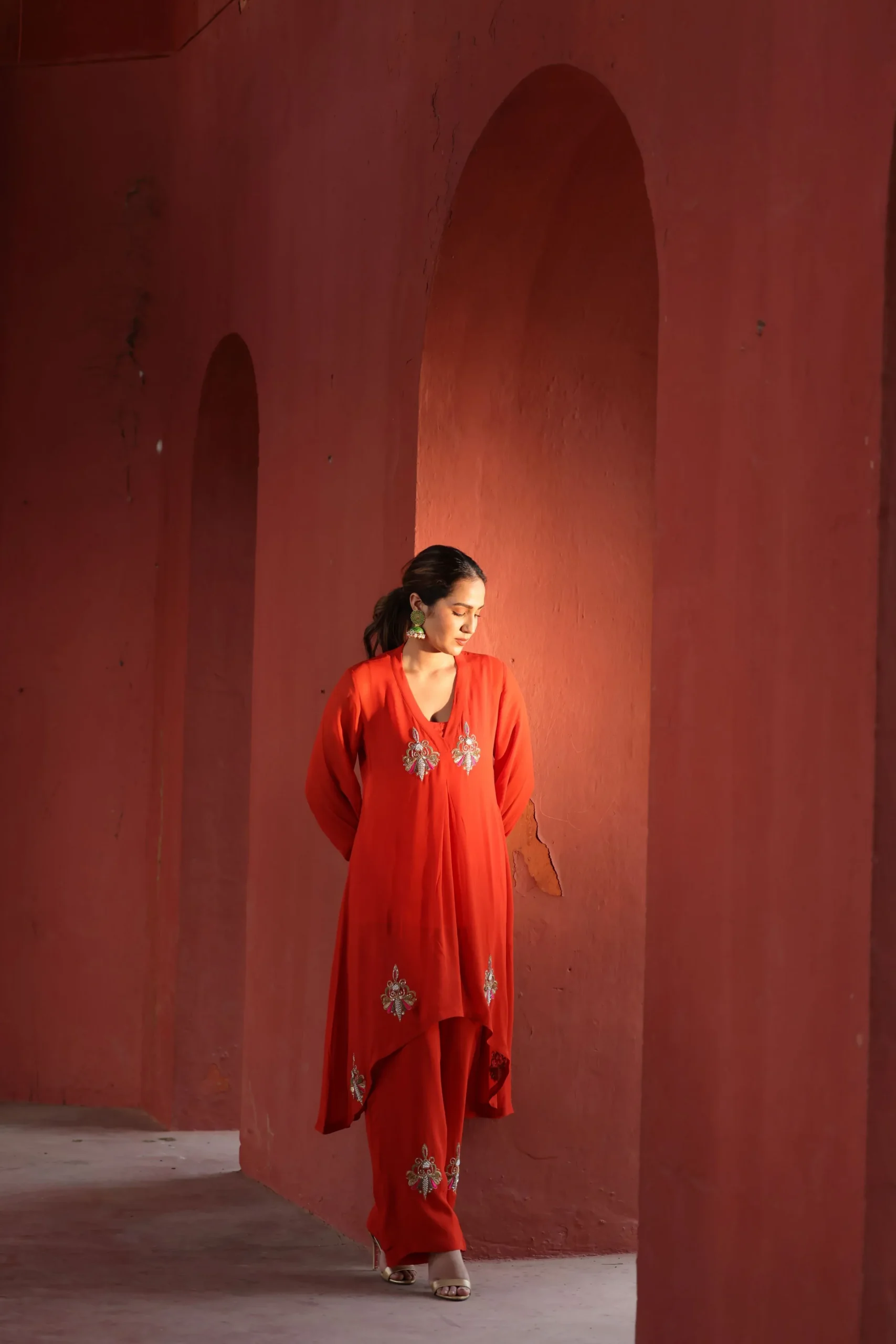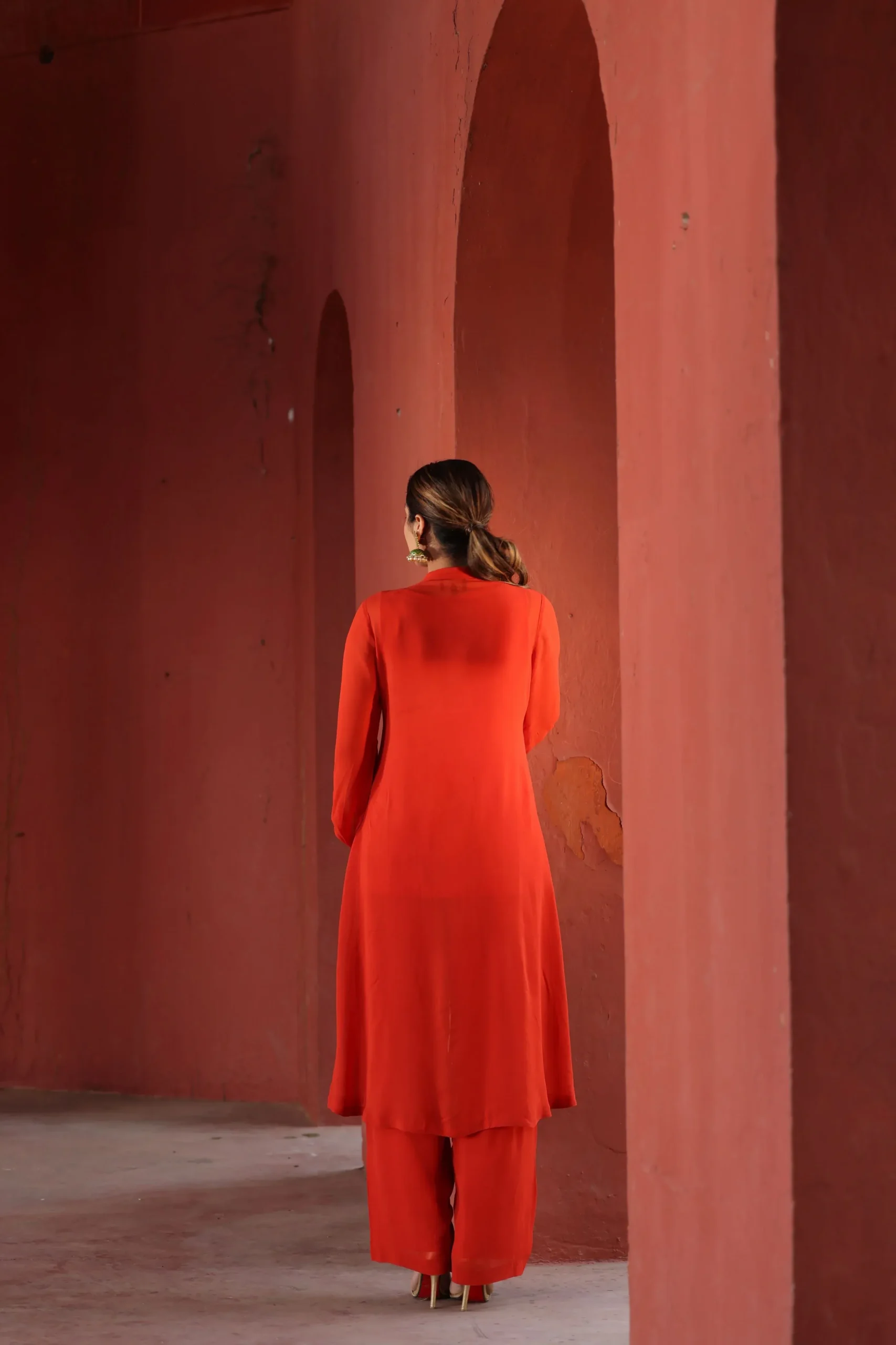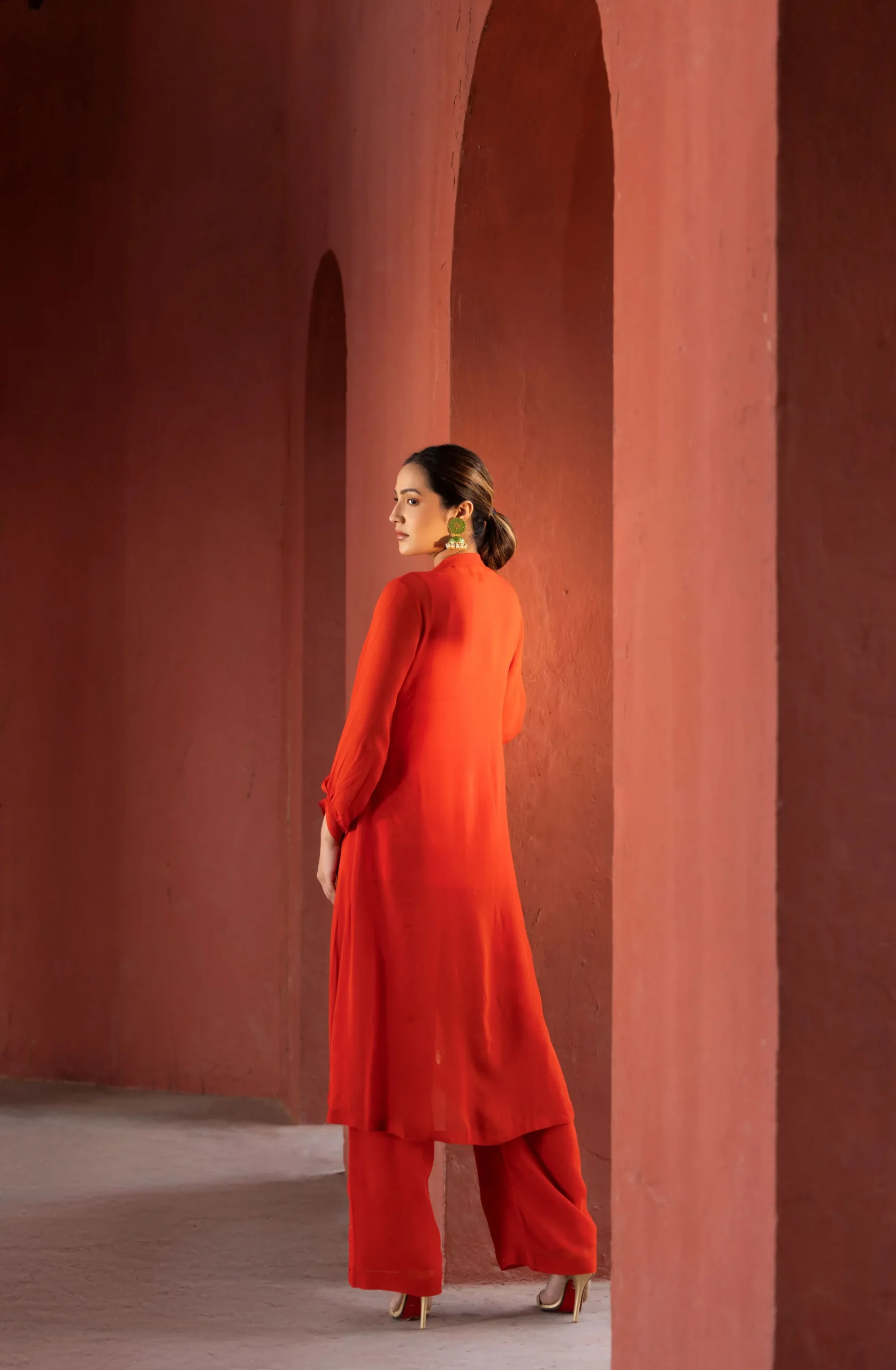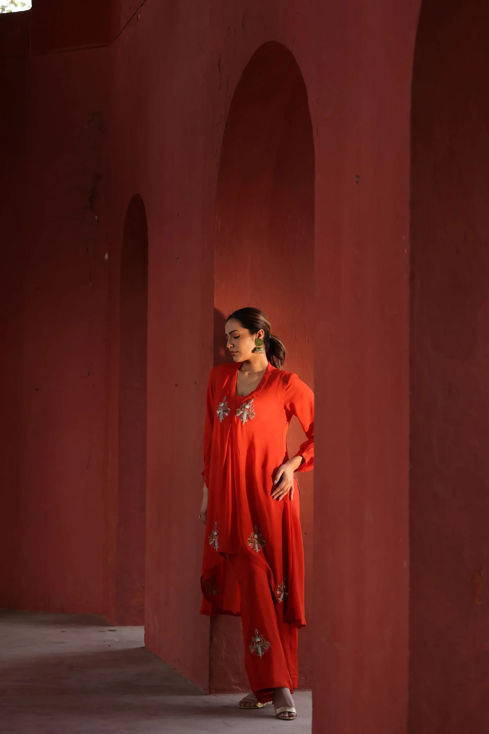 Elevate your ethnic wardrobe with the timeless elegance of our Crimson Grace Embroidered Kurta Dress. Crafted in a rich, deep red hue, this piece exudes sophistication and understated luxury.