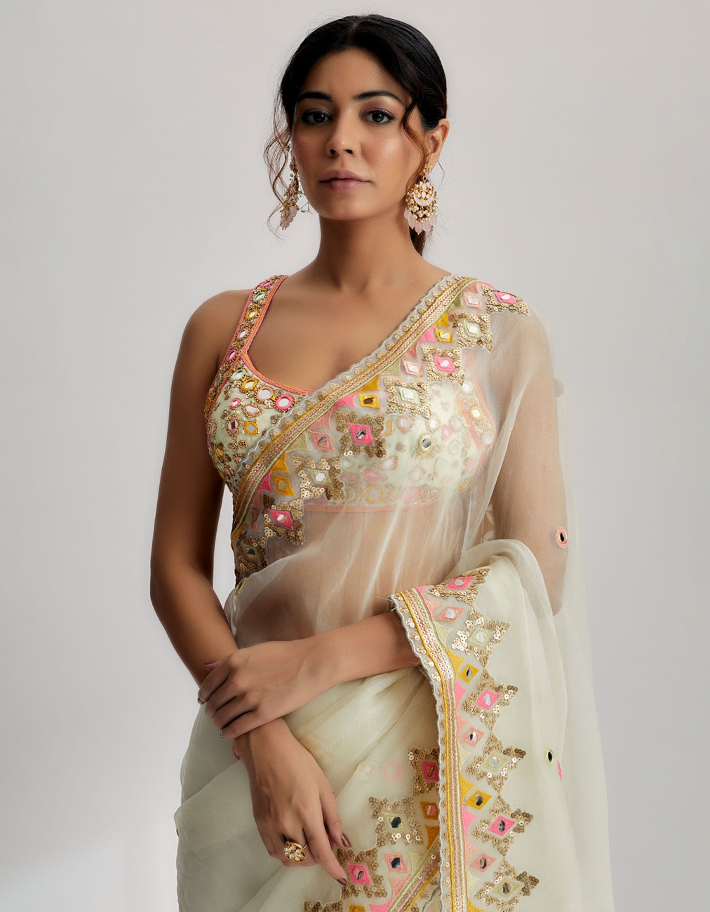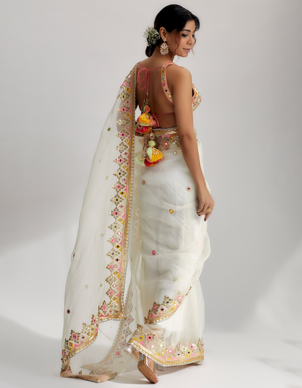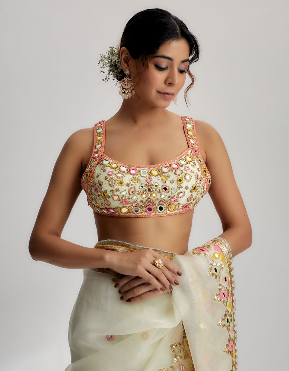 Floral Mirror Drape Saree