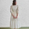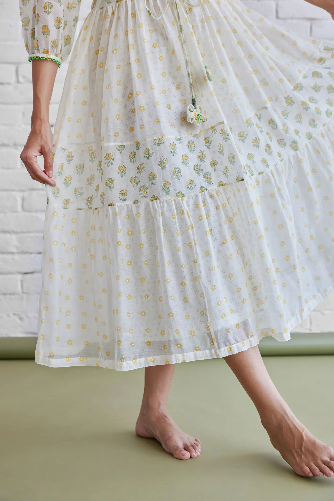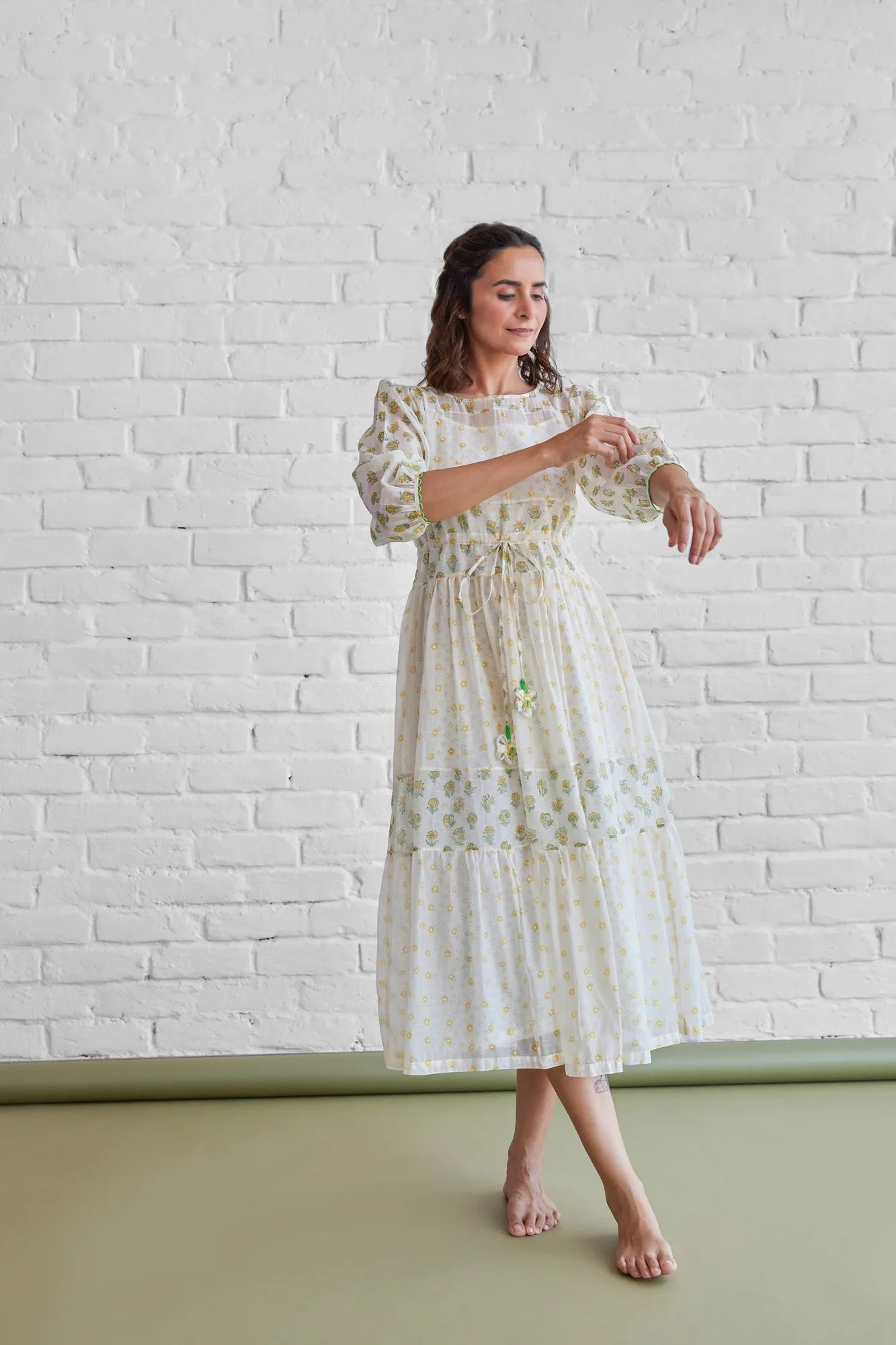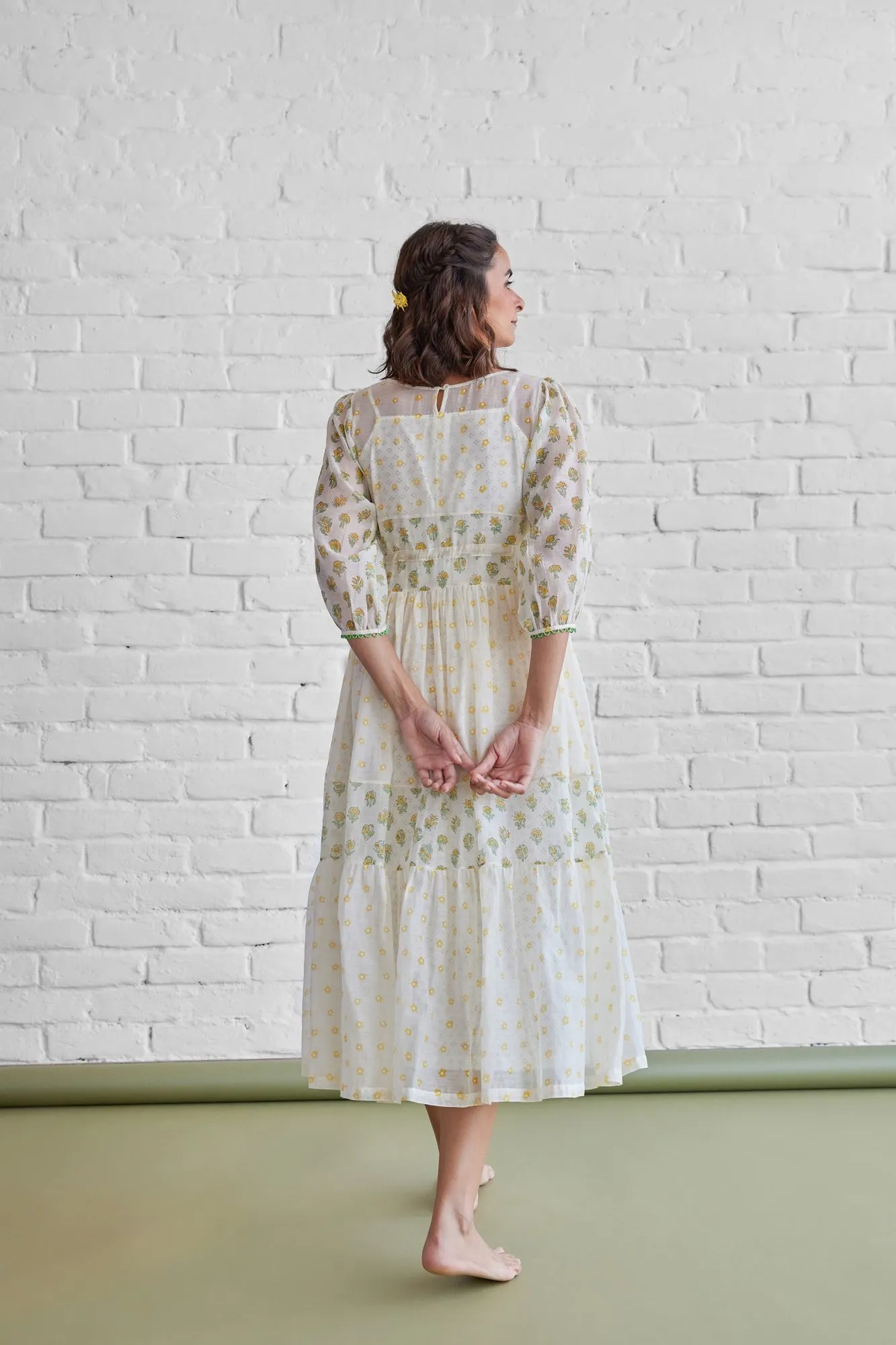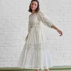 Step into understated elegance with our Ivory Meadow Tiered Midi Dress, designed for women who love comfort with a touch of charm. Crafted in a lightweight fabric, this dress features subtle floral motifs that enhance its soft, feminine appeal.