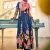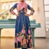 - Deep blue Anarkali with vibrant floral prints