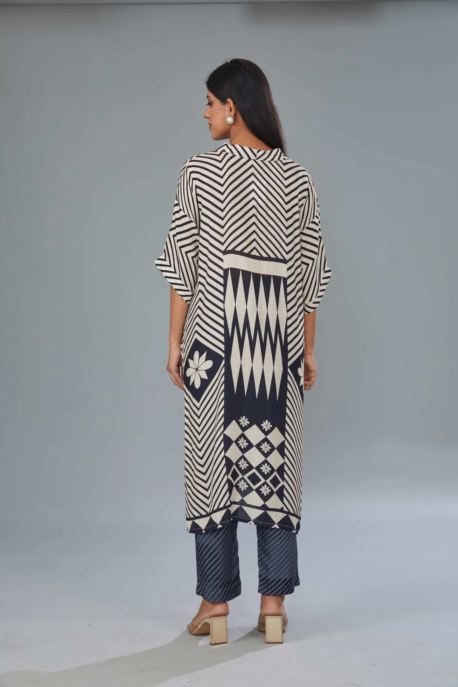 Make a bold yet refined statement with our Monochrome Muse Printed Co-Ord Set. Designed in striking black and ivory tones, this ensemble features an artistic mix of geometric and floral prints that create a modern, standout look.