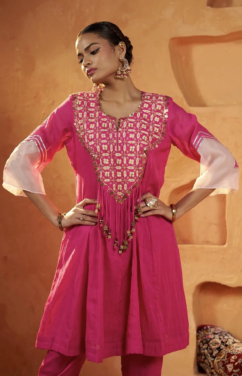 Grace meets femininity in this soft pink kurta set featuring delicate embroidery. Crafted in silk blend, it offers a refined festive look perfect for celebrations.