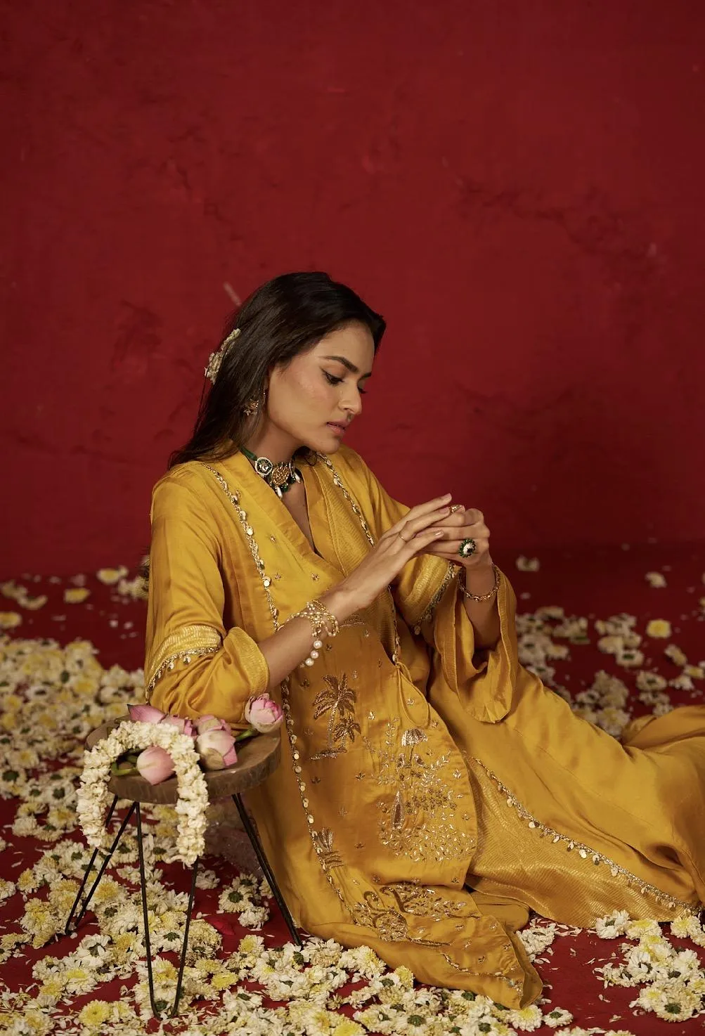 Bright and festive, this yellow kurta set is crafted in silk blend with elegant embroidery details. A perfect choice for daytime celebrations and festive occasions.